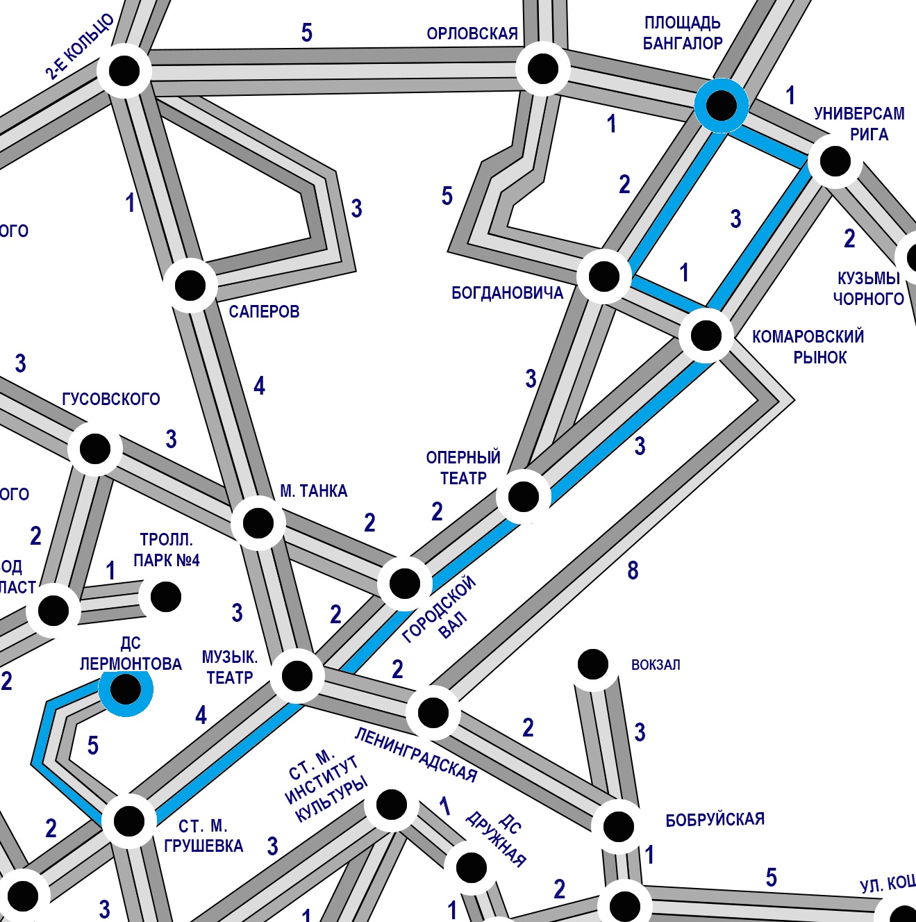 | 57 | Городской вал - Горецкого | 16 / 8 |