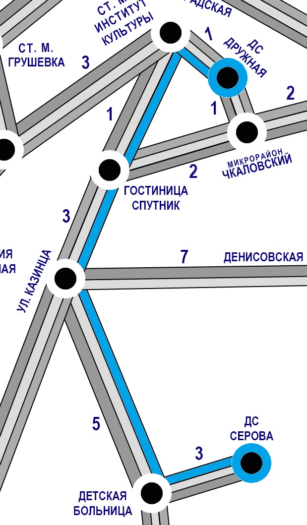 | 64 | ДС Малиновка-4 - ДС Дружная | 22 / 11 |