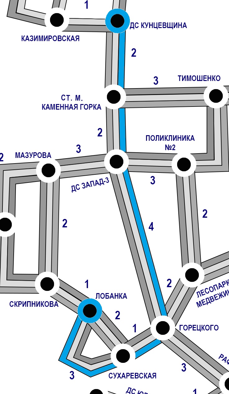 | 25 | ДС Кунцевщина - ДС Малиновка-4 | 30 / 15 |
