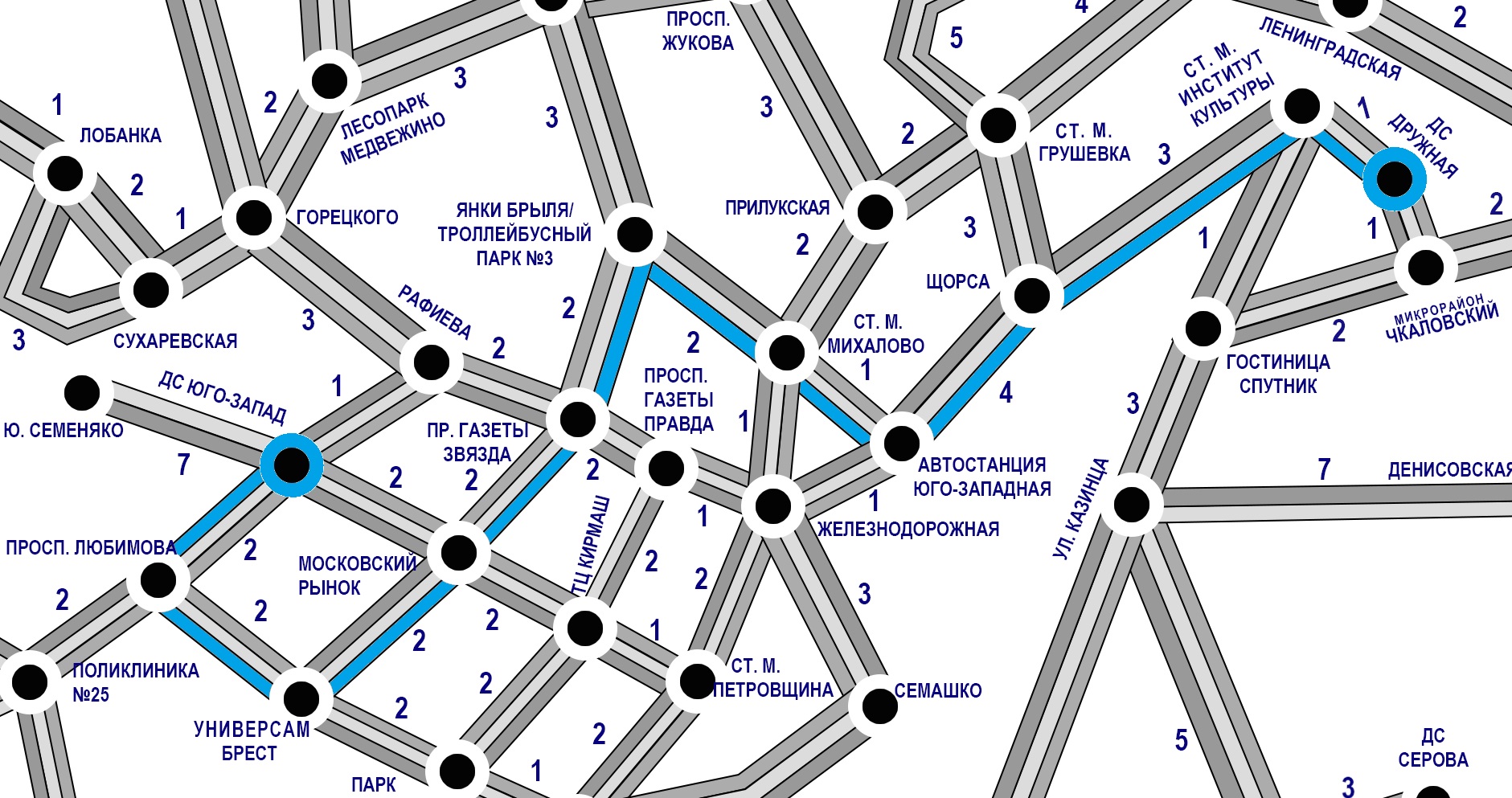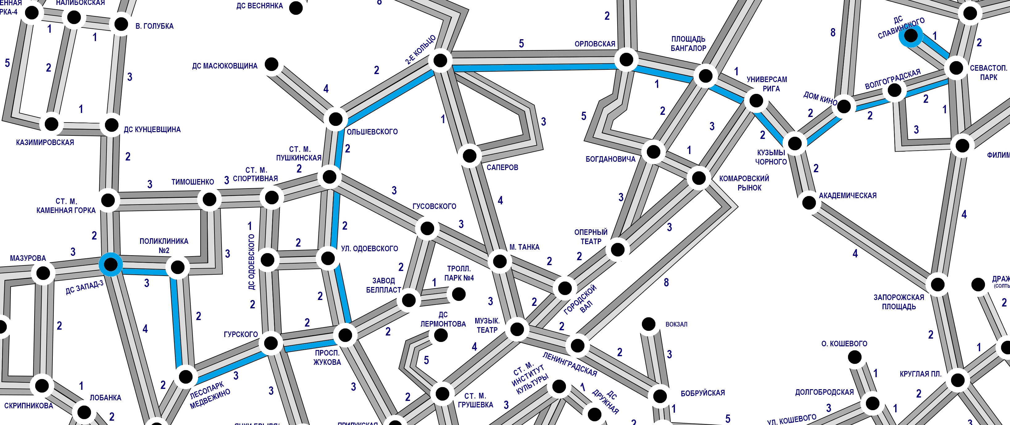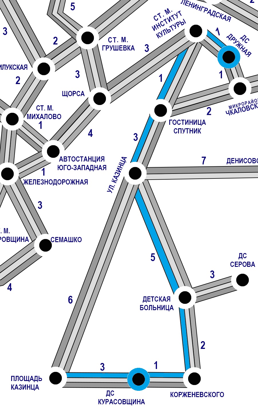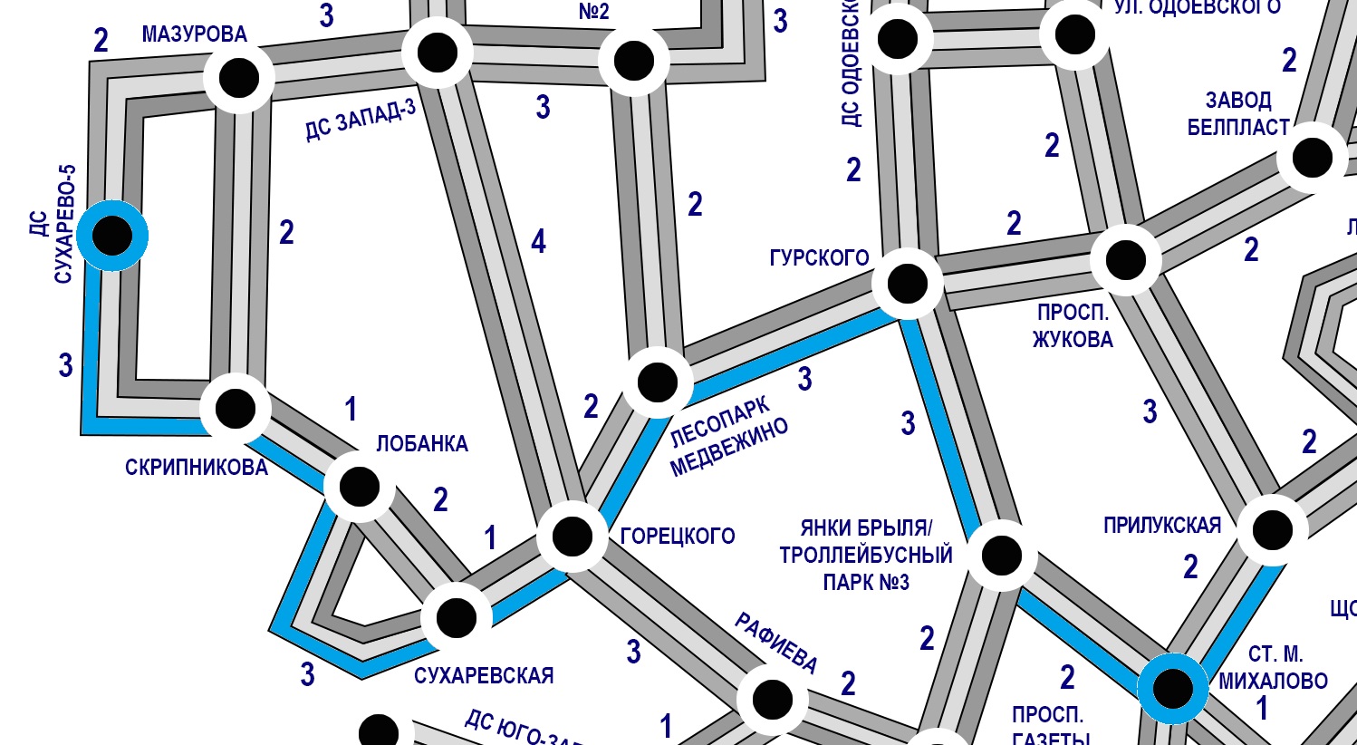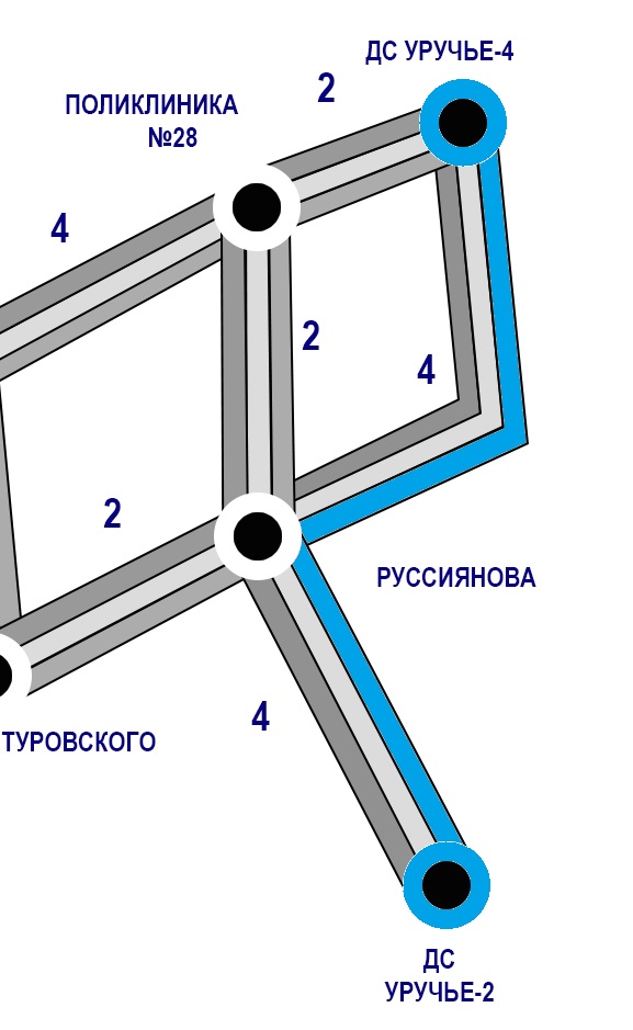 | 62 | ДС Уручье-2 - ДС Уручье-4 | 8 / 4 |